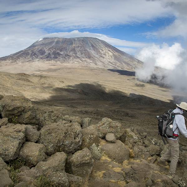 乞力马扎罗山位于坦桑尼亚与肯尼亚两国的交界处,高5895米,面积756平方公里。斯瓦希里语“乞力马扎罗山”意即“闪亮的山”或“明亮美丽的山”,耸立在离印度洋不远处一片绵延起伏的平原上,被称作“非洲屋脊”和“上帝的殿堂”,峰顶终年积雪,形成赤道雪山奇观。 心仪这座高峰的人多半缘于海明威的影响,在那篇著名的《乞力马扎罗山的雪》的小说中,海明威开头寥寥几笔便勾勒出神奇的意境。然而随着全球温室效应,乞力马扎罗山的雪正在融化,并可能在15年内完全消失。仅与1912年相比,乞力马扎罗山的“雪帽”就已经缩小了82%。