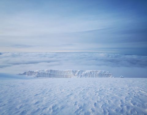 登顶的线路一共有7条,我们选的是最好登顶的一条,还不不哦的登顶的线路一共有7条,我们选的是最好登顶的一条,还不不哦的。然后现在据向导讲,还有六坐冰川,但是随着全球变暖的速度,冰川慢慢融化。