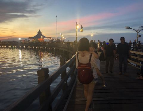 在雅加达呆一天,在地图上找了这个似乎能带孩子玩的地方,进去之后一路惊喜。这里太适合带孩子玩儿了!只可惜进公园已经下午三点半,就把公园走马观花的看了一下,傍晚就去海滩玩啥看日落去啦。门票25K一个人,园区很大有巴士随便搭乘各站点。百分之99.9都是本地人带着孩子来看动物、玩水上乐园或是沙滩海水。园区工作人员非常友好。海水不太干净,但是这里的孩子玩得欢!还有死蝙蝠漂浮在海水中,吓死我了