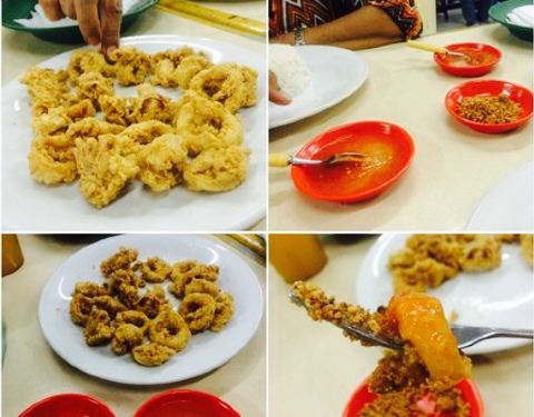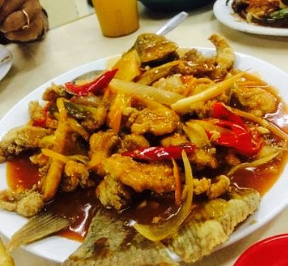 路边的一家海鲜饭店,自然魔鬼鱼要点的,不过魔鬼鱼感觉鱼刺比较的多一点点,里面的章鱼小管很好吃哦,鱿鱼很新鲜哦,还有就是鱼排很嫩。