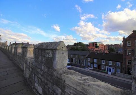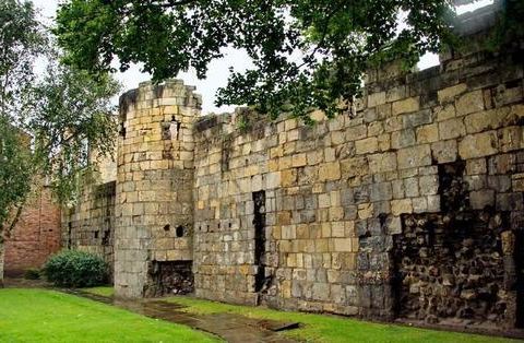 约克城墙是一座由罗马人建造的长达5公里的正方形城墙,作为防御外敌的屏障。从火车站进入市区就可以看到这些城墙。 城墙以约克大教堂为中心,绕城墙一圈大约需要2个小时。在约克,登城口被称为“Bar”,登城墙的入口包括北边的BoothamBar和西南边的MicklegateBar,还有东北边的MonkBar和东南方的WalmgateBar。 游客可只走其中一小段,如约克大教堂附近的BoothamBar到MonkBar,在沿途可以观赏到约克大教堂的景观。