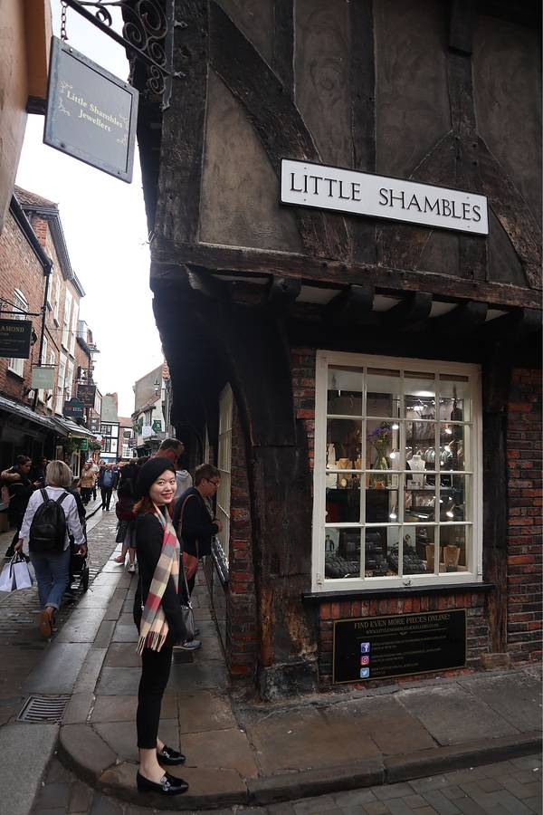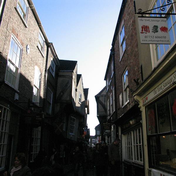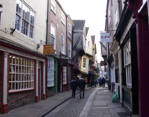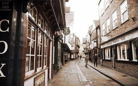 约克肉铺街是英国迄今为止保存的较完整、较为古老的中世纪街道。以前这里都是肉铺,阳光下肉类容易腐坏,所以特意把道路修的狭窄些以免阳光过度直射。肉铺街全年基本照不到阳光,夏季十分凉爽。 这里有充满童话色彩的建筑,也是《哈利波特》系列电影中小魔法师们买各种魔法道具和书籍的地方——“对角巷”的原型。然而这街名的中文翻译却和魔法一点都不沾边,甚至还有一些“重口”,叫做“肉铺街”。“肉铺街”的英文原词是The Shambles,这个词是由中世纪的单词“Shamel”演变而来的。“Shamel”的英文意义则是Booth(货摊)+Bench(长凳),多少已经有点“肉铺店”的意思了。自从有了正式的历史记录以来,这条街就是一条肉铺店+屠夫林立的街。 现在的肉铺街是约克非常有名的商业街,街道都已经有了很大的改动。街两侧的店铺都是些精美的个性小店,文艺气息浓厚。在肉铺街还隐匿着许多家值得探寻的古董店,对于那些喜爱古董的来客们来说,这里便是寻宝的天堂。