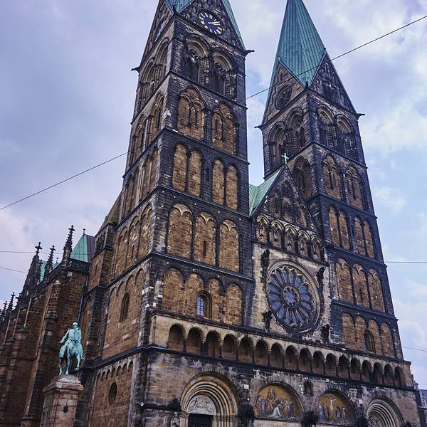 不莱梅圣彼得教堂历史悠久,始建于1200年前,是典型的双塔造型。