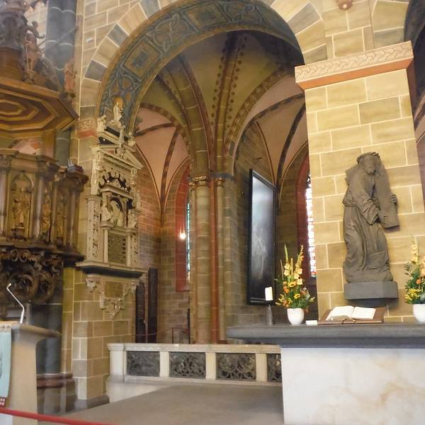 不莱梅圣彼得教堂汇集了各种建筑风格,是不莱梅的地标之一。教堂的地下礼拜堂是整个建筑最古老的部分。最吸引人的就是石墨地窖(Bleikeller),斑驳而古旧。