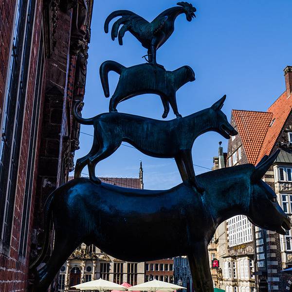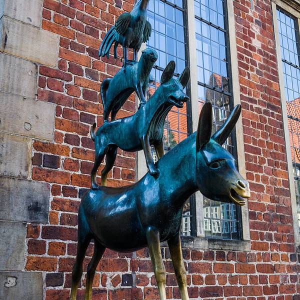 ...arck)创作的著名的不来梅城市音乐家(Bremer Stadtmusikanten)铜制塑像市政厅西面矗立着有艺术家格哈德•马尔克斯(Gerhard Marck)创作的著名的不来梅城市音乐家(Bremer Stadtmusikanten)铜制塑像。1339年以来,在这个汉萨城市有一批城市音乐家,他们从教堂塔上吹奏或在过节时演奏。格...市政厅西面矗立着有艺术家格哈德•马尔克斯(Gerhard Marck)创作的著名的不来梅城市音乐家(Bremer Stadtmusikanten)铜制塑像。1339年以来,在这个汉萨城市有一批城市音乐家,他们从教堂塔上吹奏或在过节时演奏。格林兄弟的童话就是根据著名的城市音乐家的故事创作的。跟童话中所说的一样,这些“城市音乐家”总是在途中接受流浪的音乐家。 展开