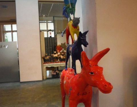 ...为了这个城市的一个标志了,雕塑有四个动物叠在一起,非常的生动,也很可爱,感觉在很多的地方都看过可别小看这一个小的雕塑,它已经成为了这个城市的一个标志了,雕塑有四个动物叠在一起,非常的生动,也很可爱,感觉在很多的地方都看过。