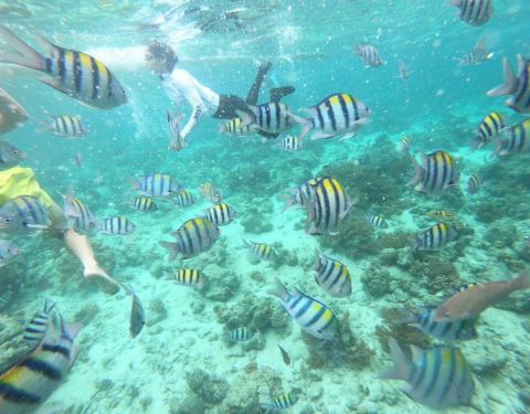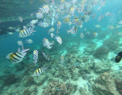 碧海蓝天,那里的鱼儿自由自在的游呀游,是鲸鲨居住的好地方,