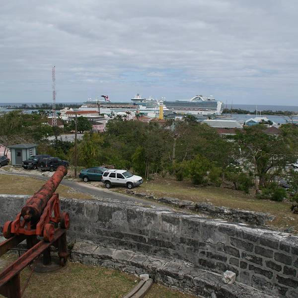 芬卡斯尔堡位于拿骚市区的最高处,是丹莫尔总督时建造的一座城堡,于1793年建成,呈船体形状,有三门大炮。踏着台阶登上城堡,登高远眺,对面天堂岛亚特兰蒂斯粉红色的宏伟建筑和海湾内停泊的数艘大邮轮尽收眼底...