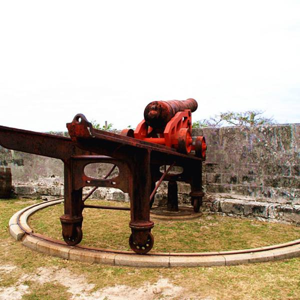 【特色】这座要塞最大的特色就是200年前为对抗海盗修筑的有轨炮台了。经过那么多年岁月的洗礼,炮台依然坚挺的矗立在那里。这门大炮主色调是红色,地上有半圆形的轨道,大炮的方位正对着出海口,要塞本身气势并不恢宏,却牢牢镇守着拿骚这座城市。