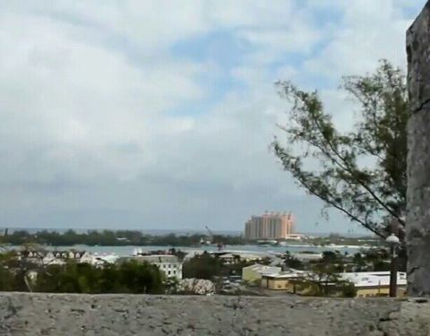 ...城堡,登高远眺,对面天堂岛亚特兰蒂斯粉红色的宏伟建筑和海湾内停泊的数艘大邮轮尽收眼底,景色宜人