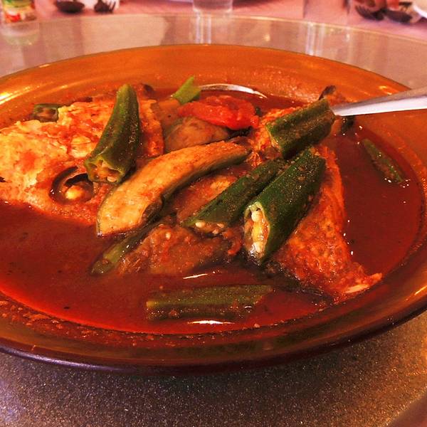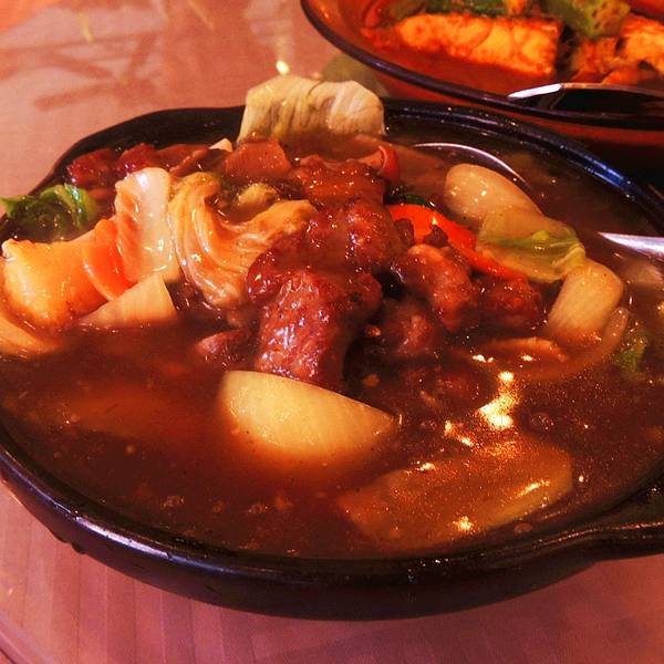 环境还算可以吧,就是国内大排档水准,但是比起GAYA街的小店,这里至少是有空调的。 一进去人还蛮多,我们第一感觉就是没有位置了,四下看了看还觉得有点尴尬。但是没想到的是,正对着门口大桌的国外客人转头看到了我们,也没说什么,就自己拿走了东西坐进了小桌子,把大台子让给了我们。当时真的是被他们这种沉默的善良感动了,不需要口头交流,只是在潜意识里默默地与人方便,每到这个时候又是感叹老外素质好国人XXX的时候了sad 吃的方面:菜牌的模式就是有很多种肉类,列出各种不同的做法供你选择,然后是各种蔬菜,最后有饮品和酒类。反正我的英语也不好,专有名词全部看不懂,秉持着什么肉我都吃,具体做法全看心情的理念。唯一只问了一下,这些辣不辣(因为有些成员不吃辣)然后就安静的坐等上菜了。出品分量中上,真心不要点太多。它有分量可以选,我们全部都只要了小号。我们看见周边好几桌人离场之后,满桌子都是剩下的菜肴。而且不是剩一点点,而是一盘盘。真心,你不吃给我们,我懒得点菜。 其实去之前先查一下当地有什么特色做法,先翻译一下专有名词会比较好。当然实在情况太急了,就拿出杀手锏,can you describe it?or advice?当然,之后还是基本没怎么听懂,除了知道了是怎么做,大概味道...........6%服务费 9人124RM