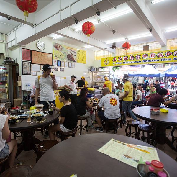 五星海南鸡饭很受游客欢迎,餐厅的招牌就是海南鸡饭,还有大名鼎鼎的橘子冰。这里点完餐就要付钱。鸡肉的做...