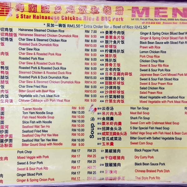 【五星海南家乡鸡饭和烧腊】特别满意的一家餐厅。是行程中最棒的两餐之一(之二是吉隆坡的一家印度餐厅且听后续报道)。