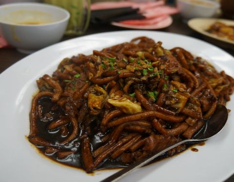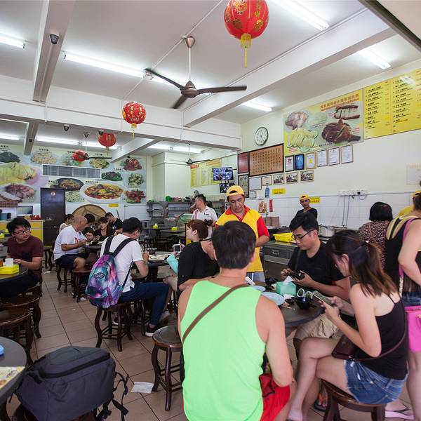 沙巴声名在外的海南鸡饭。米饭充分吸收了鸡汤和鸡油的精华,每一口都香软可口,鸡饭可以配香嫩爽滑的鸡肉,也可以配由叉烧、烧肉、烧鸭组成的烧腊拼盘。再炒上一碟蒜香芥兰,配一碗肉丸汤,食毕定会大呼满足。珍多鲜奶和胡萝卜奶是店内人气较高的两款饮品。