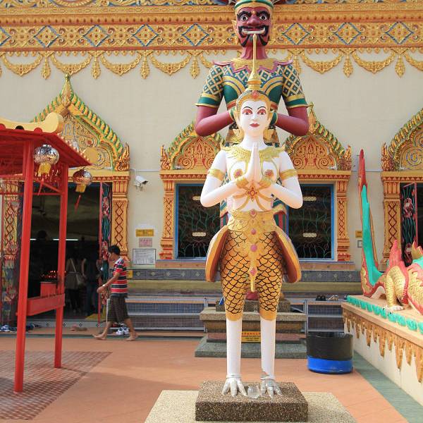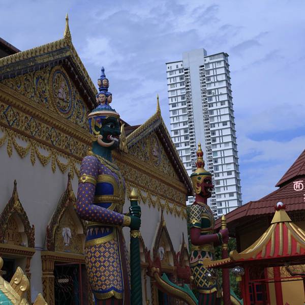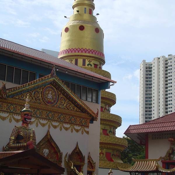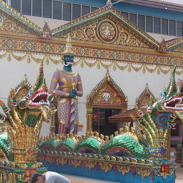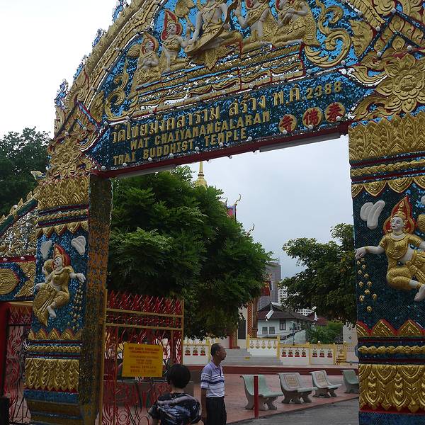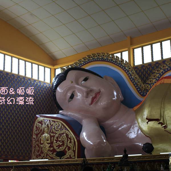 一般上人们都把泰佛寺叫成卧佛寺,因为里面有樽卧佛,它在1958年7月建成。遇到一群孩子在这里春游泰佛寺在1845年建立,占地5英亩,建筑设计有着泰国佛殿的格局,门口外面奉着两头守护龙,也有一间5层楼高的宝塔在大门进来的左边。泰佛寺的第一位高憎来自泰国,佛号PHORTHAN KUAT。他本身很喜欢吃槟城的Asam Lak...泰佛寺在1845年建立,占地5英亩,建筑设计有着泰国佛殿的格局,门口外面奉着两头守护龙,也有一间5层楼高的宝塔在大门进来的左边。泰佛寺的第一位高憎来自泰国,佛号PHORTHAN KUAT。他本身很喜欢吃槟城的Asam Laksa,后来他升天后,依然有信徒以 Asam Laksa来奉拜。一般上人们都把泰佛寺叫成卧佛寺,因为里面有樽卧佛,它在1958年7月建成。该卧佛是世界第三大的室内卧佛,全长33米,耗资马币100,000,祥和笑容祥和躺在寺庙大厅里, 卧佛的四周围还供奉了其他佛像、十八罗汉像和泰国高憎的塑像。不少游客买了金箔纸贴在高憎佛像上,祈求保平安。遇到一群孩子在这里春游。看着这个情景,恍惚来到泰国了!泰国的寺庙看得多了,清迈的寺庙多如牛毛!在槟城里看到这个卧佛,我还是觉得很惊讶,该卧佛气势恢宏!更巧的是遇到一群小学生春游(孩子们好像讲的泰语),但我不明白泰国孩子怎么到马来西亚春游的,也许是泰国移民吧? 展开