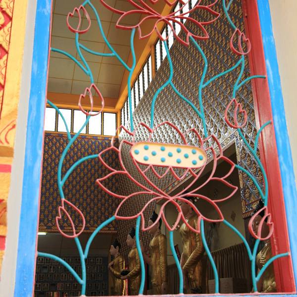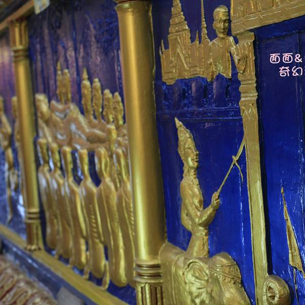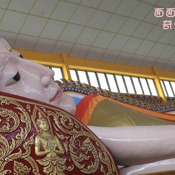 内供奉着一尊长达33米,排名世界第三大的卧佛像内供奉着一尊长达33米,排名世界第三大的卧佛像。佛像的建造融合了三国风格,佛像慈眉善目,眼睛和脚指甲都由贝壳镶嵌,佛身则贴有金箔,金碧中不失庄严。卧佛像身后有12座生肖立佛像。