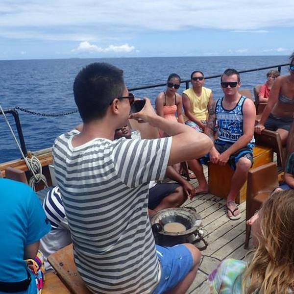 今天的活动是乘坐库克船长号心形岛一日游 心形岛——学名Tavarua(提雾阿) 我已经晒的跟船长一样黑了。