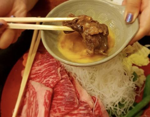 有些踩雷,牛肉的品质不是很好,口感就很差。还要了在日本当地很受欢迎的牛肉火锅,蘸蛋液食用