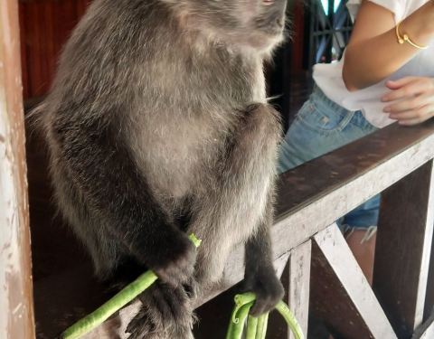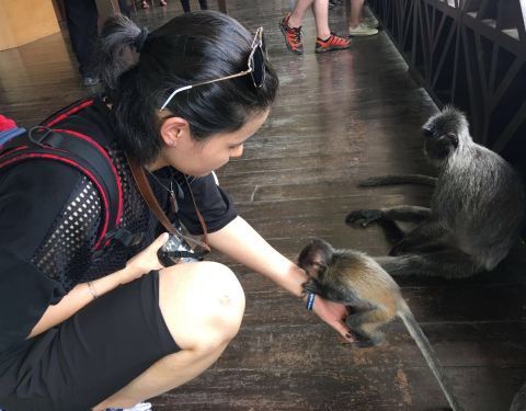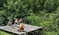 和稀有的长鼻猴亲密接触,给它们喂食,与它们合影。
