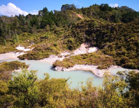 一片雾气腾腾,有着带蒸汽的河流和瀑布,景色蔚为壮观,而且空气中飘着一股浓浓的硫磺味,有一种怪怪的感觉罗托鲁瓦有着丰富的地热资源,华卡雷瓦雷瓦地热保护区就是最能体现这里地热资源最丰富的地方。进入这里,一片雾气腾腾,有着带蒸汽的河流和瀑布,景色蔚为壮观,而且空气中飘着一股浓浓的硫磺味,有一种怪怪的感觉。罗托鲁瓦有着丰富的地热资源,华卡雷瓦雷瓦地热保护区就是最能体现这里地热资源最丰富的地方。进入这里,一片雾气腾腾,有着带蒸汽的河流和瀑布,景色蔚为壮观,而且空气中飘着一股浓浓的硫磺味,有一种怪怪的感觉。 展开