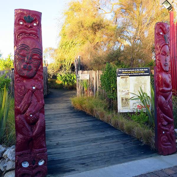 地狱之门地热公园(Hells Gate Geothermal Park)占地超过20公顷,园内拥有丰富的地热景观,游客可以见到热气腾腾的喷气孔和热浪翻滚的泥浆池。游客还可以沿着古代毛利战士走过的步道漫步于保 护区内,欣赏到南半球最大的热水瀑布——卡卡西瀑布(Kakahi Falls),这里也曾经是毛利战士从战场上归来之后沐浴疗养的地方,含有硫磺的热水可使其伤口愈合,并洗尽战争带来的“创伤”。