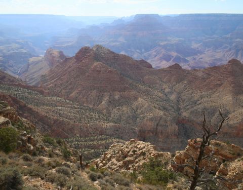 大峡谷的一个个观景台太多了反正就是车子沿途开,然后看到观景台就停。 这个观景台我也不记得是所到的第几个了,号称这里是看日落的好地方,不过我们去的时候是正午,光线实在不怎么好。 只是,看到眼前的景色还...