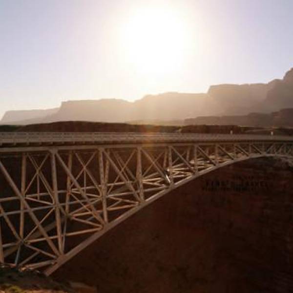 翌日再出发,天蓝的那么不真实,云压的那么低,好想就这样永远看风景。沙漠、山谷、高速公路,偶尔有1、2辆车停路边拍照。坑爹的导航仪又把爹带到错误的道路了,封路了。往前试着走,巧遇了一个小景点,Navajo Bridge。Navajo Bridge 还是有点名气的。从这里往西,一直要到胡佛坝,才能有桥横穿科罗拉多峡谷(大峡谷底部的那些小桥不算)。后面的红色山峦就是Vermilion Cliff。Wave 波浪谷就在这山里。