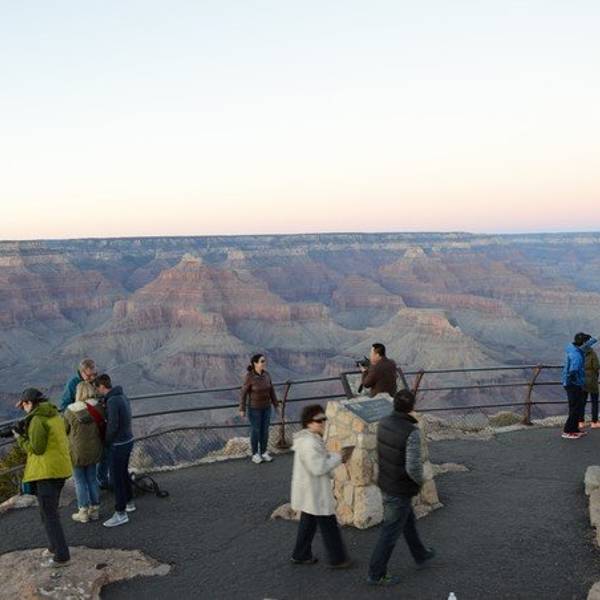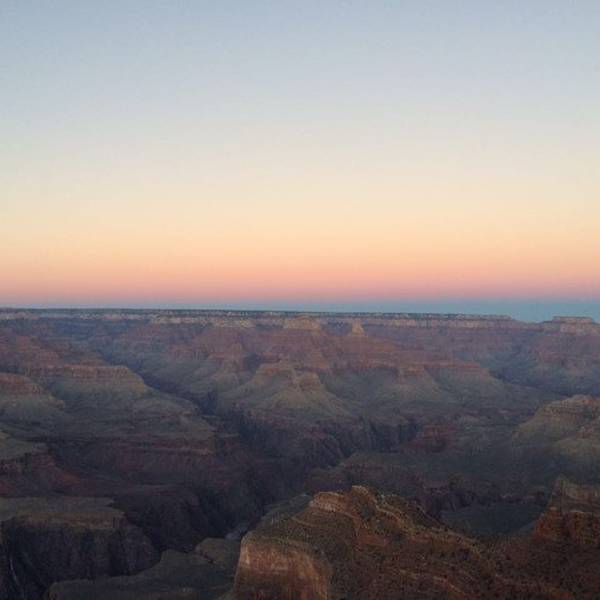 坐在大峡谷Hopi Point的悬崖边上等待日落,能够观赏到让人非常震惊的美景。脚下的风景沟壑纵横、巨石横亘,映在日落的余晖中,别有一番滋味。在大峡谷一定要找到合适的点来观看日落,会使大峡谷变幻着不同的颜色。