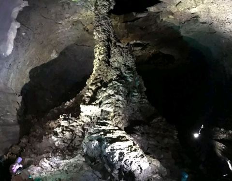 万丈窟是由火山喷发的熔岩形成的熔岩洞窟,全长七公里多,不过没有完全对游客开放只开放一公里,所以...万丈窟是由火山喷发的熔岩形成的熔岩洞窟,全长七公里多,不过没有完全对游客开放只开放一公里,所以进去之后还是原路返回的,洞内温度很低建议带一些厚的衣服。
