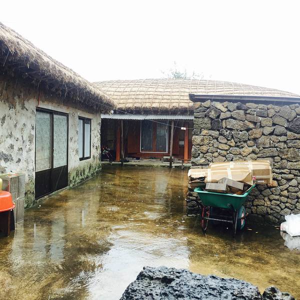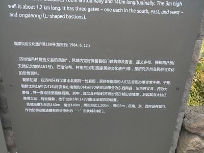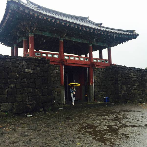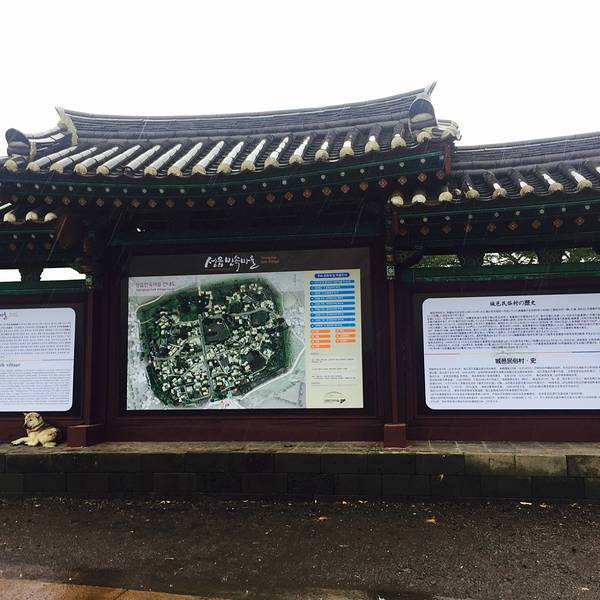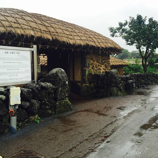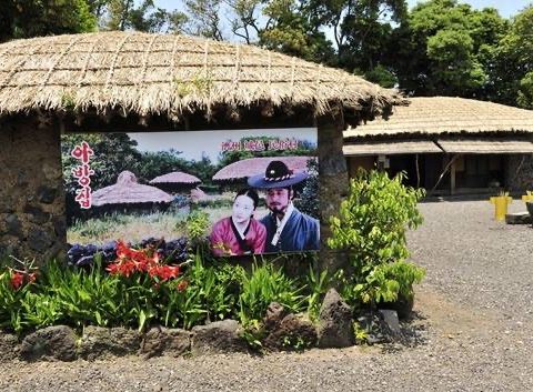 不过村里现在多数的屋子是空的,只有很少几间有人居住,大多也是在做着跟旅游有关的经营城邑民俗村四周是一圈古城墙,用黑色火山石垒成,两三米高,十分厚实。 村里的民宅屋顶都是以厚茅草覆盖,用多孔的火山岩石砌墙、泥土填缝,再加上熔岩垒的挡风墙,使得屋子的保温性能相当好。 这里自古民风淳朴...城邑民俗村四周是一圈古城墙,用黑色火山石垒成,两三米高,十分厚实。 村里的民宅屋顶都是以厚茅草覆盖,用多孔的火山岩石砌墙、泥土填缝,再加上熔岩垒的挡风墙,使得屋子的保温性能相当好。 这里自古民风淳朴,各家都是以两根粗木取代大门,外出时只需把粗木横在门口就行,真正是夜不闭户了。不过村里现在多数的屋子是空的,只有很少几间有人居住,大多也是在做着跟旅游有关的经营。而在村外还有些同样的民宅,那倒好像确实是有正常生活的居民。 村中有座院子像是古时候的衙门,旁边还有两颗古树,看介绍有600年的历史了。 村里游客寥寥,一间间空空的屋舍冷冷清清,感觉像是专门搭建起来的布景,倒是很适合拍照。 在村东头看到了《大长今》的取景地,墙上贴着大幅的宣传画,很有名的一部韩国片,我没有看过。 城邑民俗村方圆几百米,自己这么随意走走看看,不用一个小时也就逛遍了。 展开
