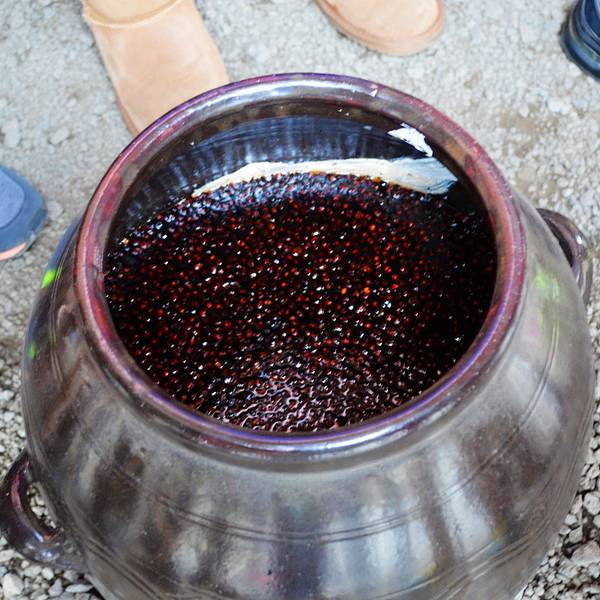 女主人很热情的用中文迎接我们的到来,参观了这里的一草一木,还有厨房也是大锅烧制的那种。接着带我们去品尝了很多她们这里的特色,当然也不忘记推销一下马油、保健品和一些药酒,遇到会砍价的游客,她和她的老公还用韩语在商量一下价格。胖胖的女主人很热情,最后我们的司机说他家也是原住民,但不是住在这里的,这里现在已经成为一个景点,虽然还是保留着原汁原味的屋子,但是里面还是改造后的。