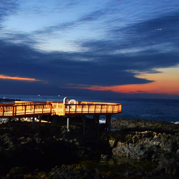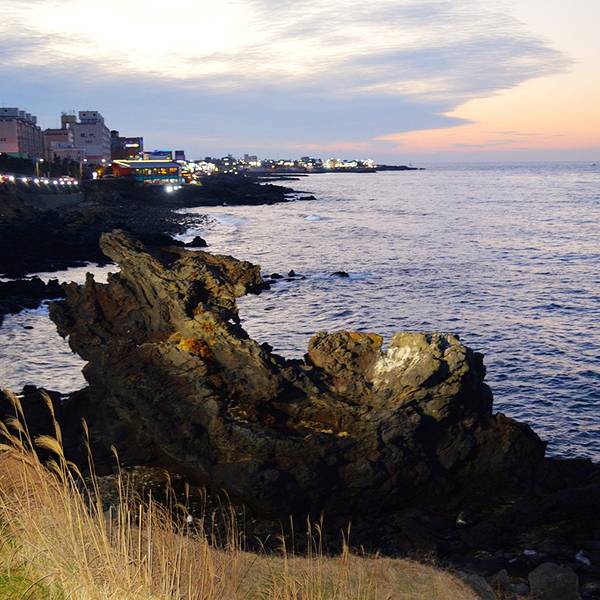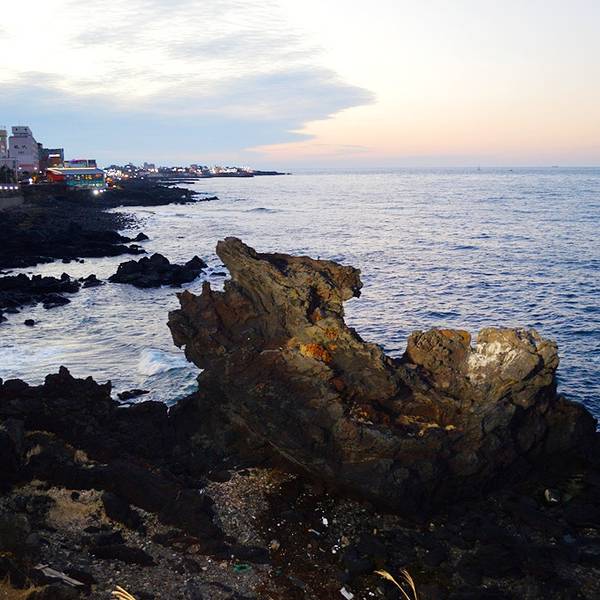 实用 龙头岩是济州岛的著名景点之一,由于济州岛就是一个小岛,所以在龙头岩可以看海景。穿过小路,就到了龙头岩龙头岩是济州岛的著名景点之一,由于济州岛就是一个小岛,所以在龙头岩可以看海景。我们是当天晚上去参观龙头岩的,因为有着灯光效果,龙头岩在远处深蓝的海色中别有一番美感。龙头岩,根据名字就可以想象出是由...龙头岩是济州岛的著名景点之一,由于济州岛就是一个小岛,所以在龙头岩可以看海景。我们是当天晚上去参观龙头岩的,因为有着灯光效果,龙头岩在远处深蓝的海色中别有一番美感。龙头岩,根据名字就可以想象出是由于形状像龙头而得名的。其实这些都是人们的想象,想象力差的可能观察不出来哦(比如我~)到龙头岩的路上,会穿过一些小店铺,他们有买韩国当地的烧烤的,也有卖韩国济州岛最著名的橙子的,橙子真的很贵哦,一个大橙子要合为30多元(RMB)。不过可以买一个感受一下济州岛的特色,我吃了,感觉和我们国家的没什么区别。穿过小路,就到了龙头岩。在夜晚,在龙头岩的海边,沐浴在海风下,人感动格外的清爽,淡淡的海水味道,陪着美丽灯光下的龙头岩,别有一番享受! 展开