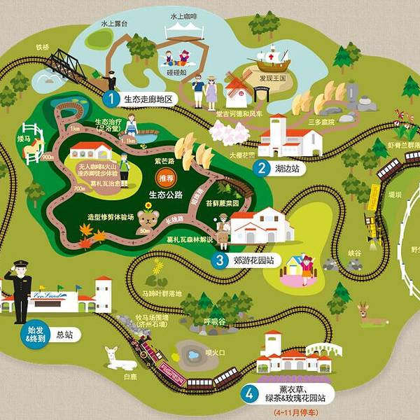 秋季的园区可能不如春夏季那么生机,但仍然挡不住它的清新之感,整体的构造大气又可爱,色彩浓烈又气质。火车穿过森林,掠过草地,游过湖畔,前两站我们都没有下车,确实是个遗憾,建议来玩的朋友们如果时间充裕的话,还是可以每一站都下车游览一番的。 展开