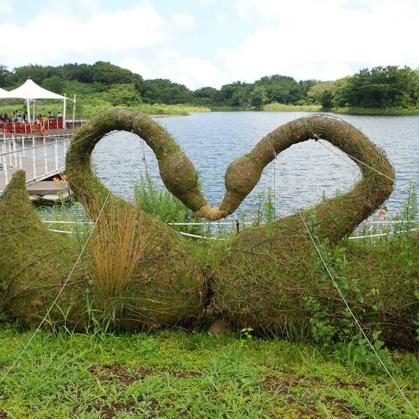 搭乘森林小火车游览汉拿山原始林,自总站(Main Station)出发,沿途停靠生态之桥站(Eco Bridge Station)、湖畔站(Lake Side)、野餐花园站(Picnic Garden)、绿茶玫瑰花园站(Green Tea & Rose Garden),最后再回到总站