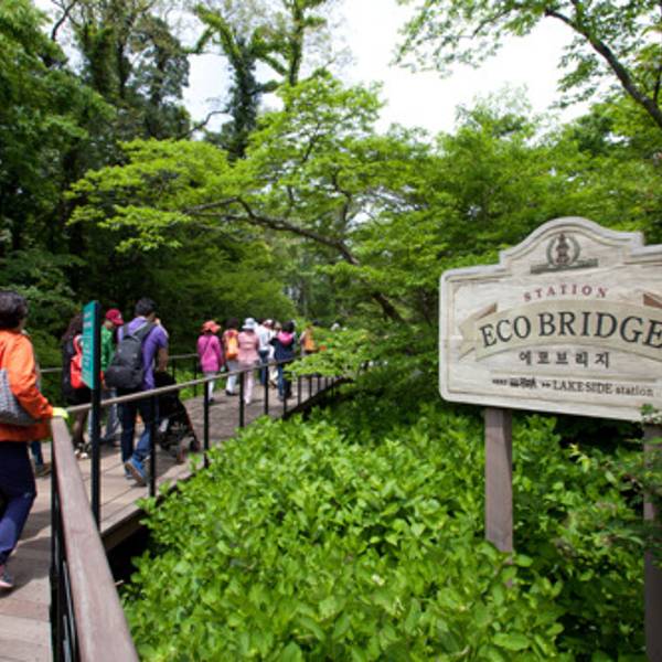 济州Ecoland生态主题乐园是目前济州岛上一个以火车旅行为主题的大型生态公园,用小火车将四个主题园区串联起来。整个公园分为五站,分别是总站、生态走廊地区、湖边站、郊游花园站以及薰衣草、绿茶&玫瑰花园站。 总站 生态花园总站呈甜甜圈形状,是生态乐园列车的始发站和终点站。设有售票处、候车室、快餐店、餐厅以及纪念品店等多种设施,另外还有一处中央喷泉广场。 生态走廊地区 生态走廊站在2万坪的湖边设有300米长的水上露台,沿着湖边漫步,感觉像走在湖水上面,是一条风格独特的路线。一边徒步到下一站,一边欣赏湖心岛风光,还可在水上咖啡小憩片刻,度过悠闲时光。 湖边站 湖边站是对过去用于养马的草地,可欣赏利用当初原来地形形成的碧蓝湖水以及设有风车和发现王国的具有异国情调的车站。站在历史的瞭望台上可以欣赏车站全景,2013年新开放的发现王国,沙子和探险船融为一体,是一处备受孩子们和喜爱照相留影的情侣们欢迎的空间。 郊游花园 在宽敞的金色草坪上可尽情享受郊游之乐趣的地方。这个站设有供孩子们玩乐的儿童城,和只有在生态公园才能体验到的生态公路。 薰衣草、绿茶&玫瑰花园站 于2013年对外开放,下火车后过花园桥,迎面而来的是由香草、玫瑰和绿茶组成的欧式庭园,越过神秘的围墙,还展示出一大片薰衣草花园和广阔的草原。
