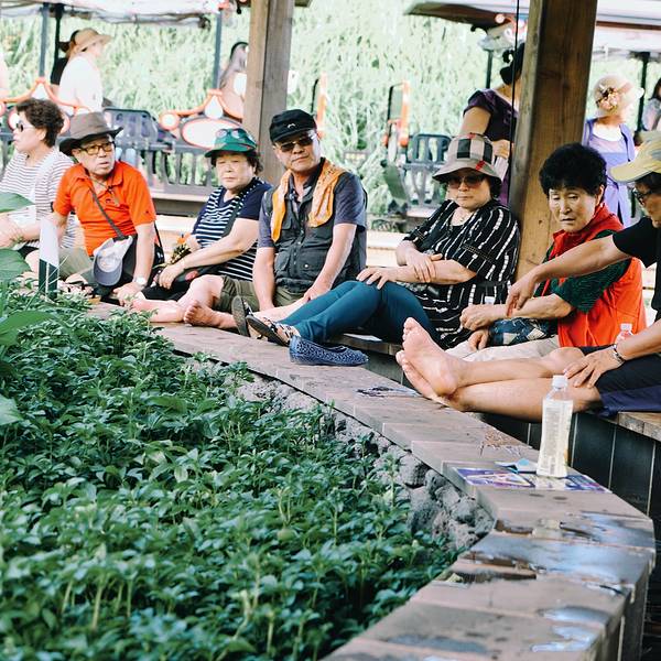 把手放上去,立刻就透心凉了~也有很多这样免费提供泡脚的地方,累了热了就小憩一会儿,泡个脚,聊聊天。
