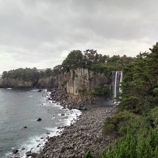 我们去的当天天气并不好,小雨时断时续,如果从济州市或者中文区方向过...正房瀑布位于济州岛的南部,西归浦市,高23米,从高度上来说规模并不大,最大的卖点在于它是正房瀑布是亚洲唯一的直接流入海中的海岸瀑布。