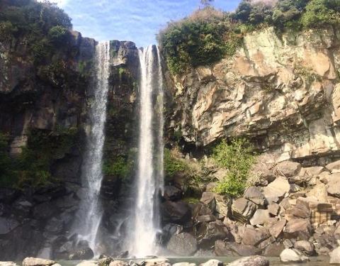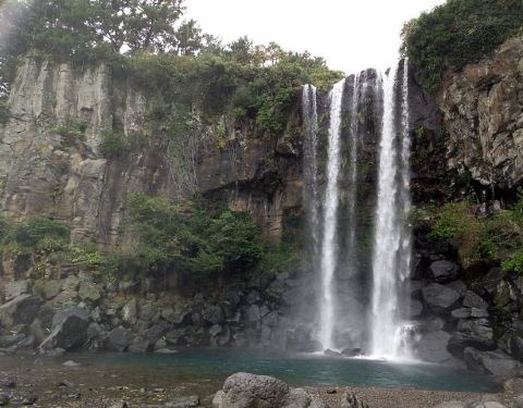济州岛三大著名瀑布中最值得参观的一个-正房瀑布。正房瀑布坐落在河流与大海的交汇处,是一处美丽的风景没有什么比瀑布的声音更好,这里也不例外。正房瀑布坐落在河流与大海的交汇处,是一处美丽的风景。在小路的入口处就有一个停车场。门票是每人2000₩。你在沿着岩石走的时候一定要小心,往往都会非常滑。注意:绝对...没有什么比瀑布的声音更好,这里也不例外。正房瀑布坐落在河流与大海的交汇处,是一处美丽的风景。在小路的入口处就有一个停车场。门票是每人2000₩。你在沿着岩石走的时候一定要小心,往往都会非常滑。注意:绝对不能坐轮椅来这里!济州岛三大著名瀑布中最值得参观的一个-正房瀑布。高23米,瀑布水流直接流入大海的瀑布,也是亚洲唯一一个。付上2,000韩圜,向下步行约一百三十级、有点湿滑的石楼梯,再攀过大小不一的岩石,便可近距离观赏瀑布。在瀑布旁的大岩石上还可坐下拍下与大自然奇观的合照。 当然,正如许多评论中说的那样,这里人非常多。从楼梯走下很简单。台阶是平的,如果你需要的话,这里有扶手和停车点。你到达底部之后,就可以坐在台阶上欣赏瀑布。同样,如果你愿意踏过岩石,就可以更加接近瀑布,我6岁和10岁的孩子很轻松的就做到了。走上去也很轻松,但出口的台阶大小有点不同,不过也没什么难的。是一次不错的半小时左右的郊游。 展开
