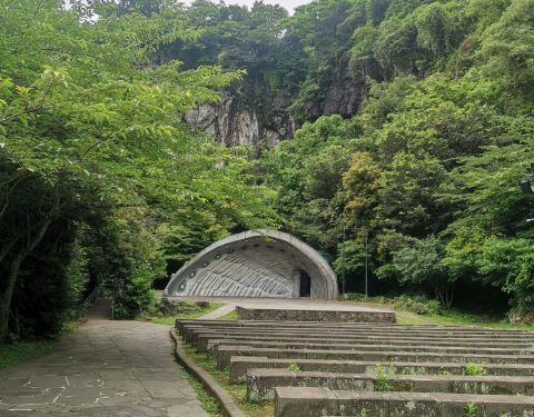 【特色】同时走到一半的时候,可以回头看到有一座桥,桥是红色的,上面用白色雕刻着七...【注意事项】一进去先是要往下面的石阶沿着走,而且只能通过一个人,上下建议慢一点,而且下雨天更有当心,建议要穿平底鞋。