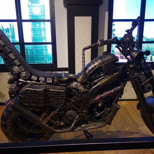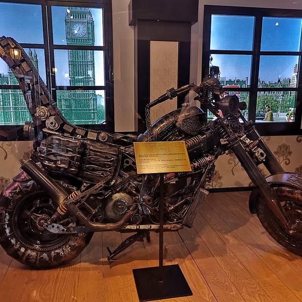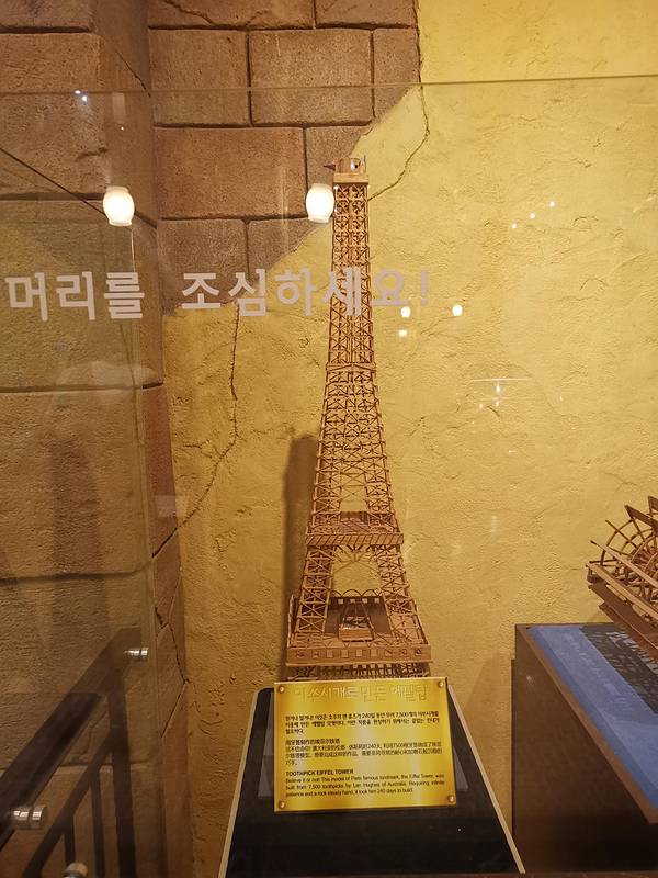 同行的男生小伙伴及其喜欢这个博物馆!这是一辆由汽车零件打造的摩托车,拥有和《铁血战士》一样的前灯。世界上鼻子最大的人,长达19厘米!这是一位澳大利亚人用7500根牙签制作的埃菲尔铁塔,耗时240天,真是需要超前的耐心和超灵巧的双手,这个我是信的。利用速食汤罐头或啤酒罐制作的小巧的家具,还有看见用卫生纸制作的婚纱,真的超级美。博物馆里陈列的都是脑洞大开的物品,很新奇,就看你信不信啦。