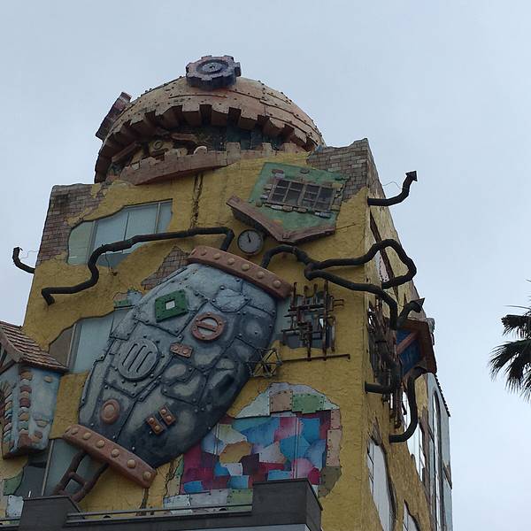 ...盯着“永动机”里的小球是怎么转了一圈又一圈,看了两个周期真是不禁给这位父亲点赞,真的是太有才了博物馆英国的一个探险家筹资设计的,里面都是一些千奇百怪的东西,小步和胖儿对新奇的东西还是挺感兴趣的,可一楼的一些千奇百怪的还是有些让小步比较惊悚的,比如什么头上长犄角的人呀,中世纪的监狱呀,还有鸟...博物馆英国的一个探险家筹资设计的,里面都是一些千奇百怪的东西,小步和胖儿对新奇的东西还是挺感兴趣的,可一楼的一些千奇百怪的还是有些让小步比较惊悚的,比如什么头上长犄角的人呀,中世纪的监狱呀,还有鸟笼里的小孩人呀。 离开一楼的惊悚区,二楼的内容还是挺有趣的,更像是一个创意杂货铺,首先引入眼帘的是一个美国爸爸用各种废弃的材料给孩子制作的“永动机”。小步和胖儿百无聊赖的盯着“永动机”里的小球是怎么转了一圈又一圈,看了两个周期真是不禁给这位父亲点赞,真的是太有才了。这个不光适合孩子玩,还适合发呆,胖儿看了五分钟,已经有点睡眼朦胧了 ,博物馆看上去是矮的一栋楼,其实内部与高的一栋连在一起,两座建筑都是博物馆。这么可爱、色彩鲜艳、无厘头的博物馆,长这么大真是第一次见。从博物馆出来,阳光刚刚好,两面充满艺术气息的后现代风格的墙,太适合做照相背景了。 展开