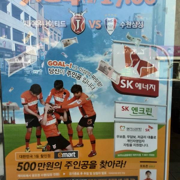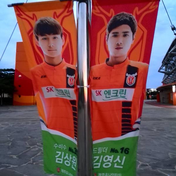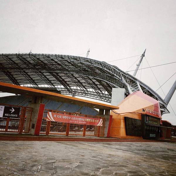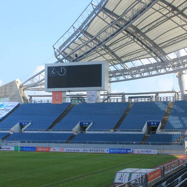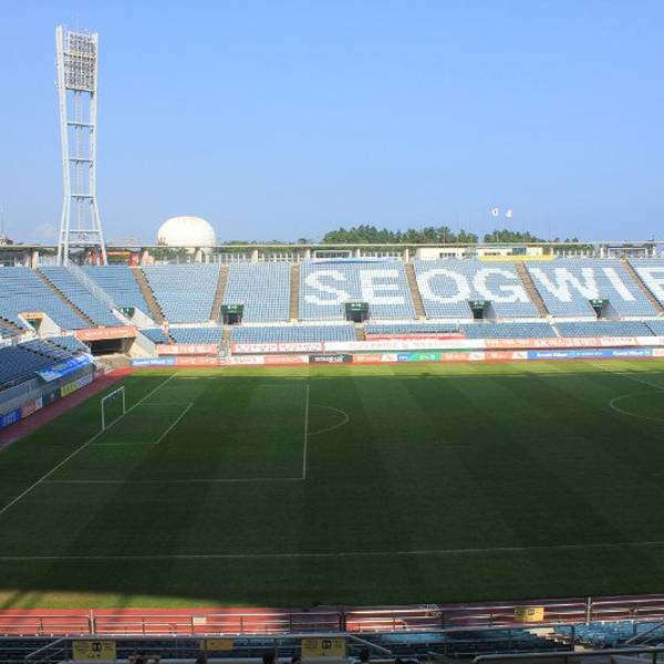 西归浦市中央环形岛(长途汽车站营业所)足球赛场:乘坐市内座席110、120、130、200、400,车费700韩元;市内一般公车6、11路,车费650韩元。
