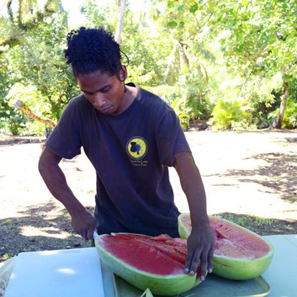 这是查莫洛文明的象征,据说原始查莫洛人的房子用提拉石,一种顶部为弧形帽状的石灰岩柱作为地基,以木头以及椰叶为材料建成。所以在关岛野外,经常可以看到有一圈围起来的提拉石,或许这就是当年查莫洛人房子的遗址。岛上各种农作物非常丰富还有各种萌哒哒的大小动物如果你足够手巧,也可以跟原住民来学学习,如何用椰子树叶做手工编纷呈。砖木取货,这活儿看着简单,但是我们一船人,精疲力竭也没几个壮汉能顺利完成。