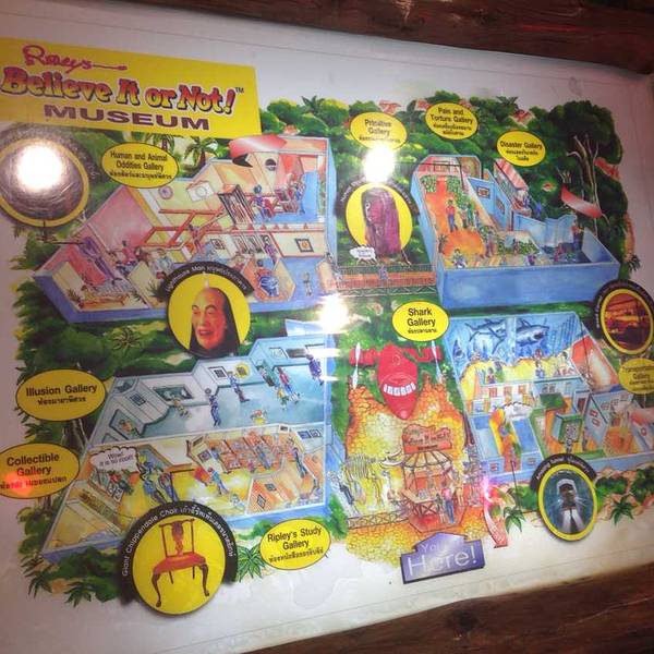 位置在商场里面2楼,有点像国内游乐场的鬼屋,从holiday in 打车过去只要10b一个人,泰国车司机一般要价都比较高,直接讲价就可以,跟他说believe it or not,就会直接给你拉过来了。门票从290b-500b不等,根据你去的不同的馆,有不同的价位,推荐在淘宝上买票,比现场便宜。里面有真人员工扮演鬼跟人互动,时不时就出来一个,还是蛮吓人的,有很多奇怪的布置,大黄蜂机器人、恐龙骨架、悬空水龙头那些,满足孩子各种好奇心,特意跑去这里坐的热气球,如果你也是冲这个来的,一定要看好天气,有风的时候没有办法起飞,安全第一,早上可以打折,我们是7点前去的,打了五折,一个人490b。玩完了出来还可以顺便逛下商场,商场对面就有个711,可以在这里买些泰国的零食,物美价廉。