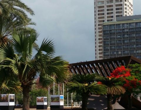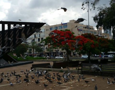 和平大厦——位于拉宾广场上,是特拉维夫最高的楼。登上顶层可以俯览整个城市。大厦周边的街道很漂亮,蓝天白云,鲜花绿植,一片和平美好的景色。几十年来对以色列的记忆都是恐怖的,没想到是如此的美丽,留下太多美好的记忆。
