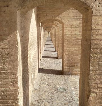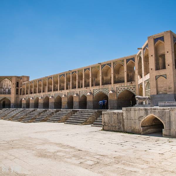 这座桥建于萨法维时期,全长110米,桥身分上下两层拱廊,是伊斯法罕最精致的桥。