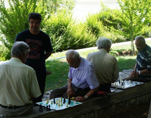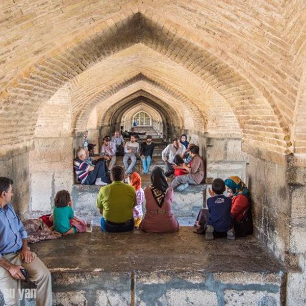这片开放式的河畔公园非常干净整洁,里面有健身器材,还有很多锻炼身体的人们,也有一些悠闲放松的老人抵达三十三孔桥北岸公园,我们从这里沿着河边公园的林荫道,继续步行约1.7公里前往哈柱大桥。这片开放式的河畔公园非常干净整洁,里面有健身器材,还有很多锻炼身体的人们,也有一些悠闲放松的老人。其中一家三口...抵达三十三孔桥北岸公园,我们从这里沿着河边公园的林荫道,继续步行约1.7公里前往哈柱大桥。这片开放式的河畔公园非常干净整洁,里面有健身器材,还有很多锻炼身体的人们,也有一些悠闲放松的老人。其中一家三口在锻炼身体做操,看见我们照相立即摆出姿势让我们拍照。还有三位老人在交流智能手机的使用,面对我们相机的镜头也是非常配合。路上见到的人很多都主动打招呼,在伊朗人们之间的谦让礼貌非常让人感到温暖,他们不仅是对外国友人,彼此同胞也是彬彬有礼。最为典型的是大街上汽车经常堵车,伊朗人开车也几乎都是横冲直闯,但却很少听到汽车喇叭的声音。 在观赏沿途的自然风光和人文景观中,我们抵达哈柱大桥,在桥头花园里的树荫下落座休息片刻,在观赏阳光下的哈柱大桥风景中吃了携带的樱桃。哈柱大桥也是扎因德鲁河上的一座优美的古桥。和三十三孔桥一样,这座桥也是17世纪萨法维王朝所建,不但用来行人,还有水坝的作用。全长110米的桥身也是分为上下两层拱廊。唯一不同的是这座哈柱大桥明显的比三十三孔桥行人和游客都要少很多。在桥堍的两侧各有一头伊朗的狮子,个头不大形象不真毫无威严,倒是狮子嘴里显露出的人像有点别致。我们随后沿着底层走过大桥,在观赏了大桥另一侧的街心花园后告别这座显得有点冷清的古桥。 展开