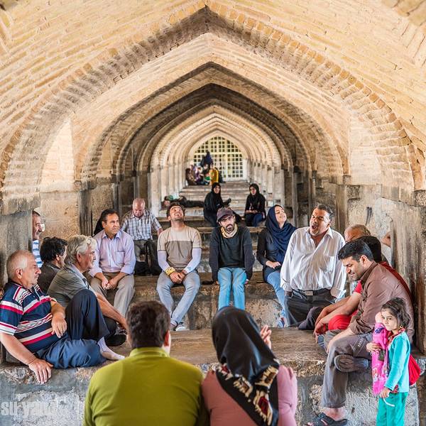 哈柱桥下经常有唱歌聚会,类似于天朝公园大爷大妈唱京戏,只不过在伊朗唱歌的人有老有少从33孔桥徒步30分钟到哈柱桥,一座带有调节水流功能的古桥,哈柱桥没有33孔桥长,但结构却比33孔桥复杂“”桥头桥尾各一只的神兽白天看不到眼睛,到了夜晚眼睛便会发光直射对方“”,首先两只兽外形图案不一样,...从33孔桥徒步30分钟到哈柱桥,一座带有调节水流功能的古桥,哈柱桥没有33孔桥长,但结构却比33孔桥复杂“”桥头桥尾各一只的神兽白天看不到眼睛,到了夜晚眼睛便会发光直射对方“”,首先两只兽外形图案不一样,形状似虎,口中有一伸出的人头,不知道是夜晚发亮的眼睛是人脸的还是兽头上,或者就是杜撰传说,这只石雕相对比较完整这只有后期修补的痕迹嘴部正面图,反正人和兽都看不见眼睛哈柱桥下经常有唱歌聚会,类似于天朝公园大爷大妈唱京戏,只不过在伊朗唱歌的人有老有少问了一下周边的人歌词的意思,解释说大概就是歌颂生活的美好,美中不足没有任何伴奏乐器小姑娘你抱着这娃娃要是在晚上会非常吓人的 展开