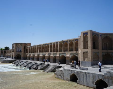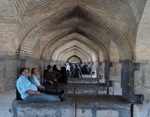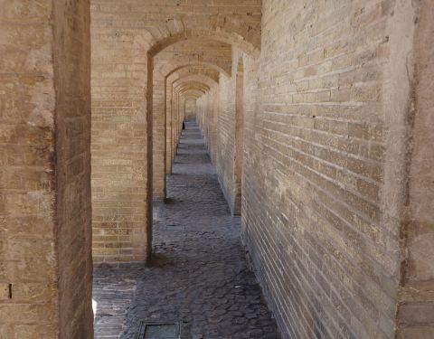 河水完全干枯了,没有美丽的倒影可以观赏了鸠鸣大桥,建于1650年左右,这是横跨在扎因达鲁德河上最具代表性的两层结构砖石古桥,600年来依然显得绚丽而实用。桥中间有一座亭子,是专为国王取乐而修建的。 河水完全干枯了,没有美丽的倒影可以观赏了。