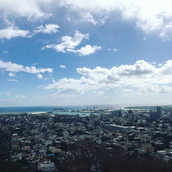 晨起锻炼,集体登山,远眺首都路易港和整个城市的全貌。另外,前台白人小哥实在太帅了